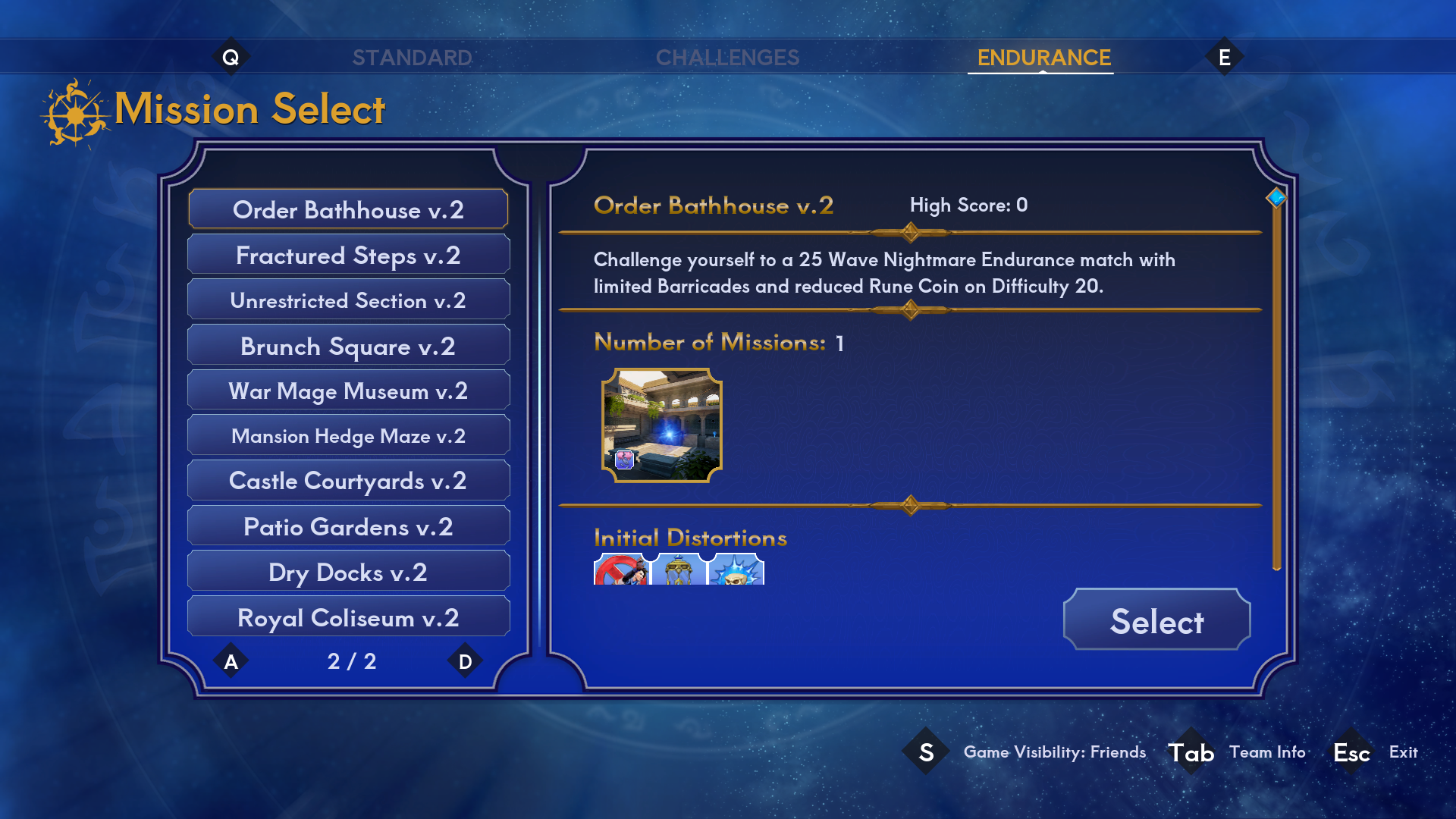 And for those who still aren’t challenged enough, we have a second page featuring Nightmare versions of each Endurance mission. These crank the Difficulty slider up to 20 and add three more Distortions: War Mages can no longer be revived by teammates, Overdrive takes twice as many combos to fill, and War Mage Rift Point loss on death doubled.. These don’t offer any cosmetic unlocks because so few of you are even going to be attempting these, but they still track your high score. Tip: Don’t forget your elixir.