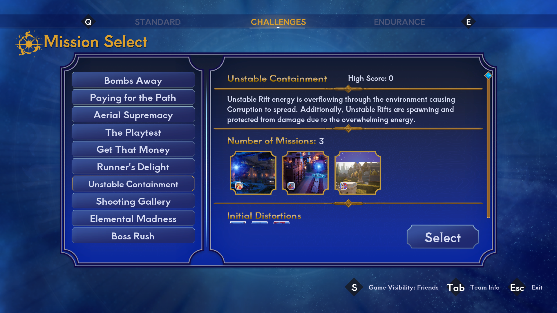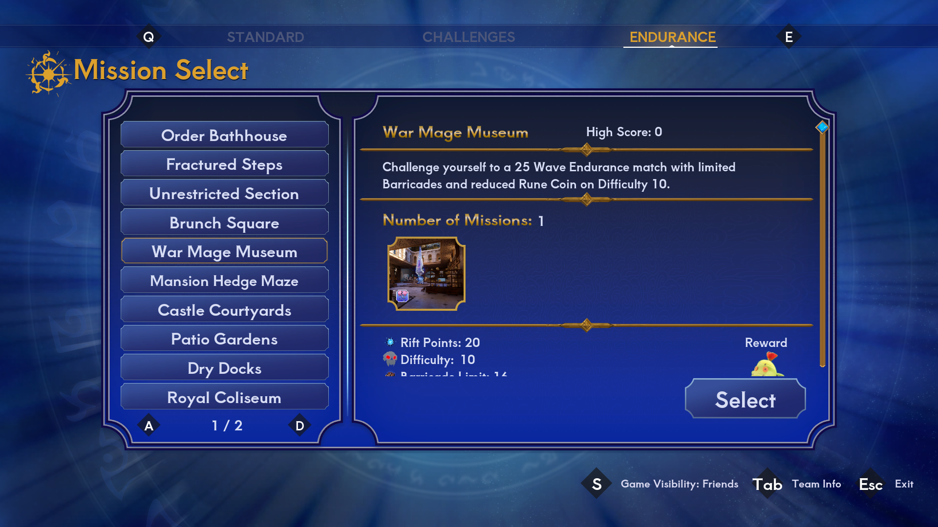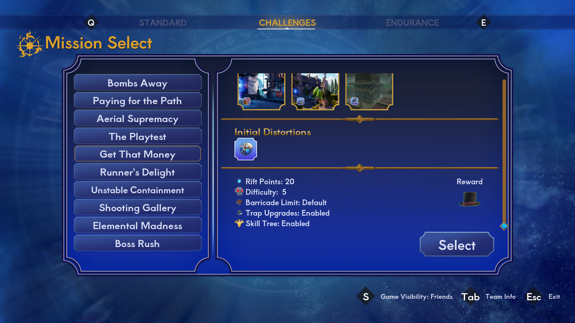 Like in Challenge Mode, we can also affect your Rift Points and starting Barricades. Each Endurance mission starts with 20 Rift Points and 16 Barricades.